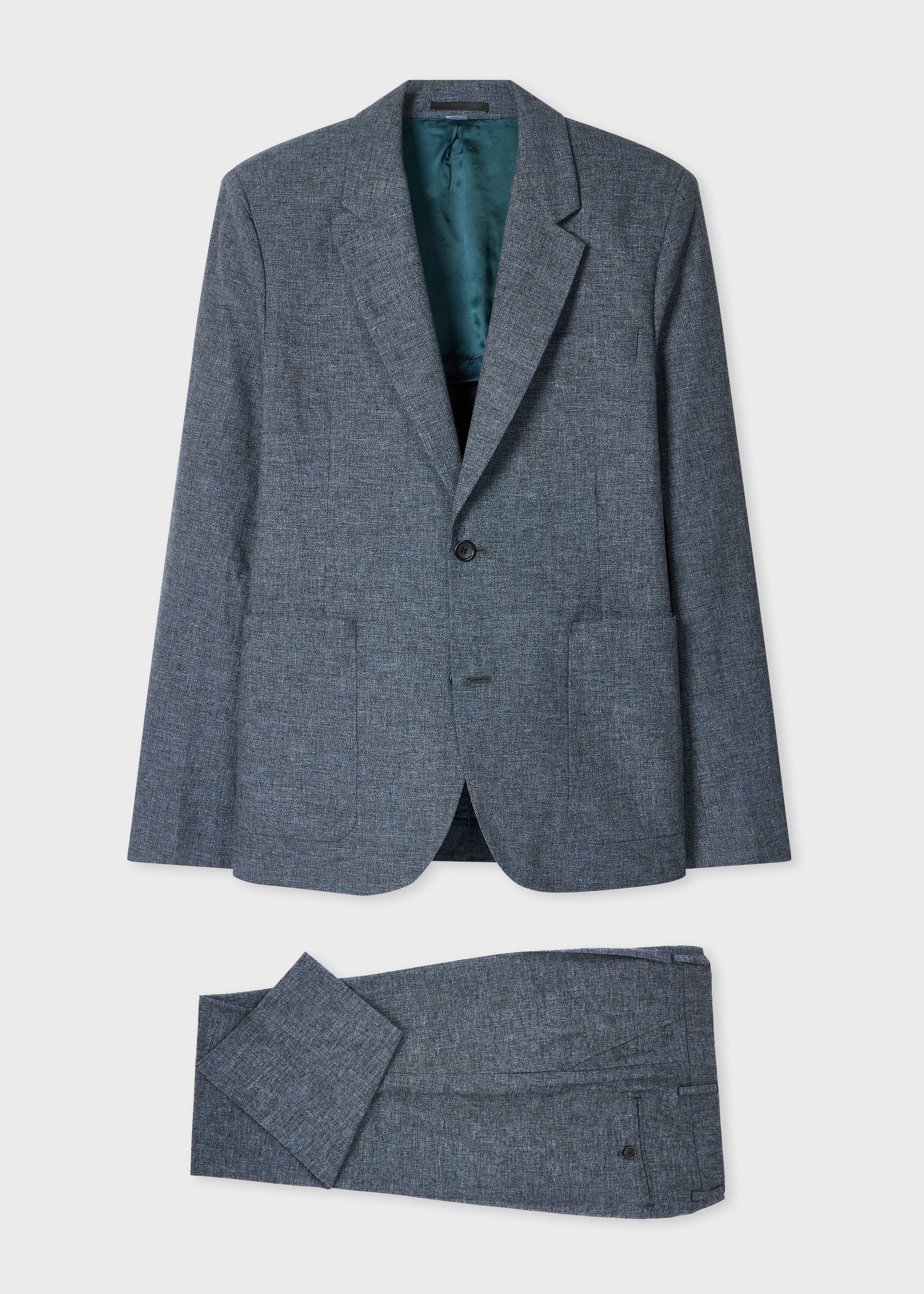 Made from a cotton and linen-blend cloth with a dry-handle melange finish, this slate blue suit is ideal transitional tailoring. The blazer features a buggy lining for added comfort and breathability. The trousers feature a pleat front design. Product Code: M2R-SUIT-T22372-49