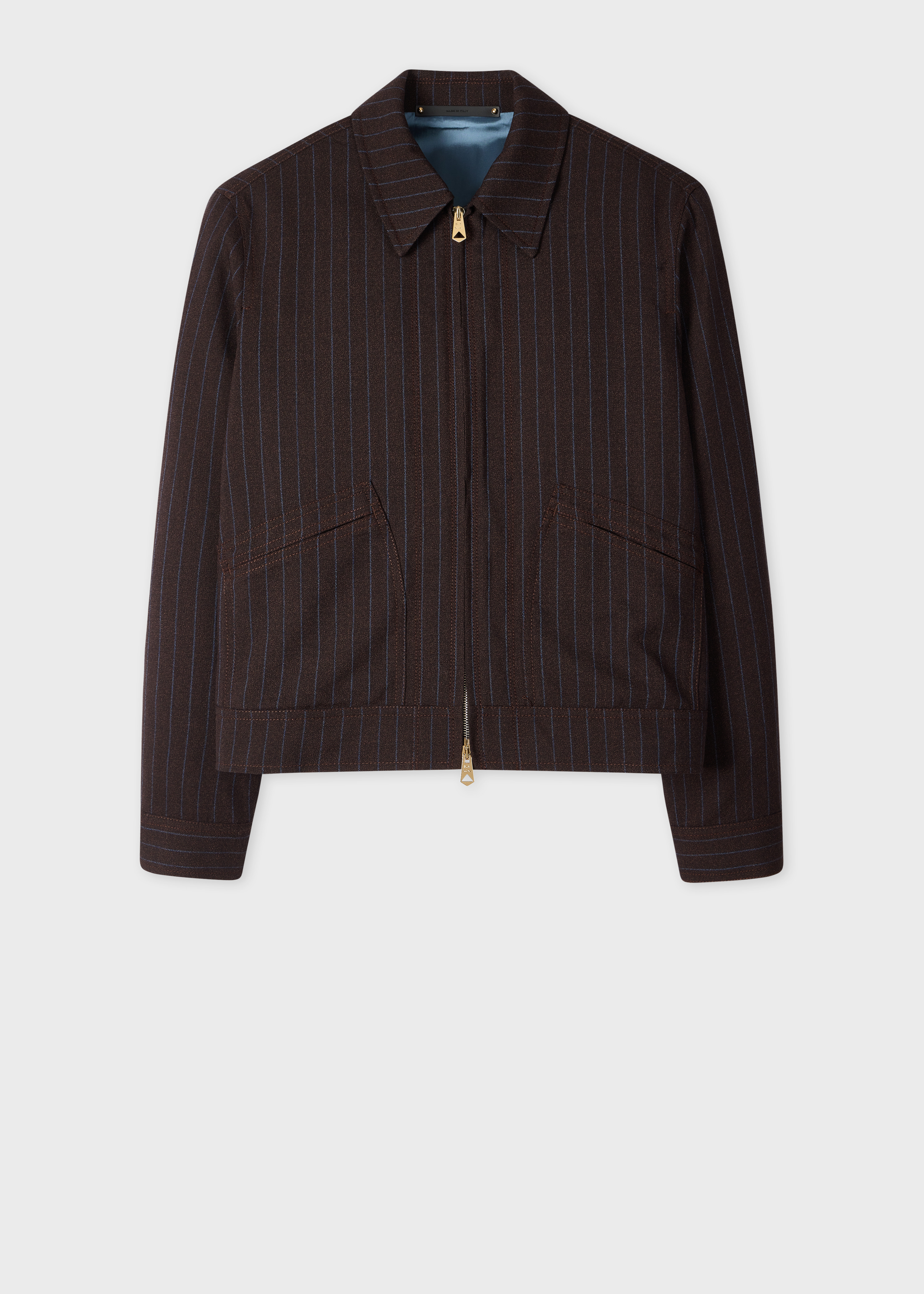 Made from 100% wool, this brown jacket features a blue pinstripe pattern throughout. Taking inspiration from vintage workwear styles, this jacket comes complete with a two-way zip fastening and two patch pockets. The Fit - Slim-Fit Product Code: M1R-698Z-T02789-28