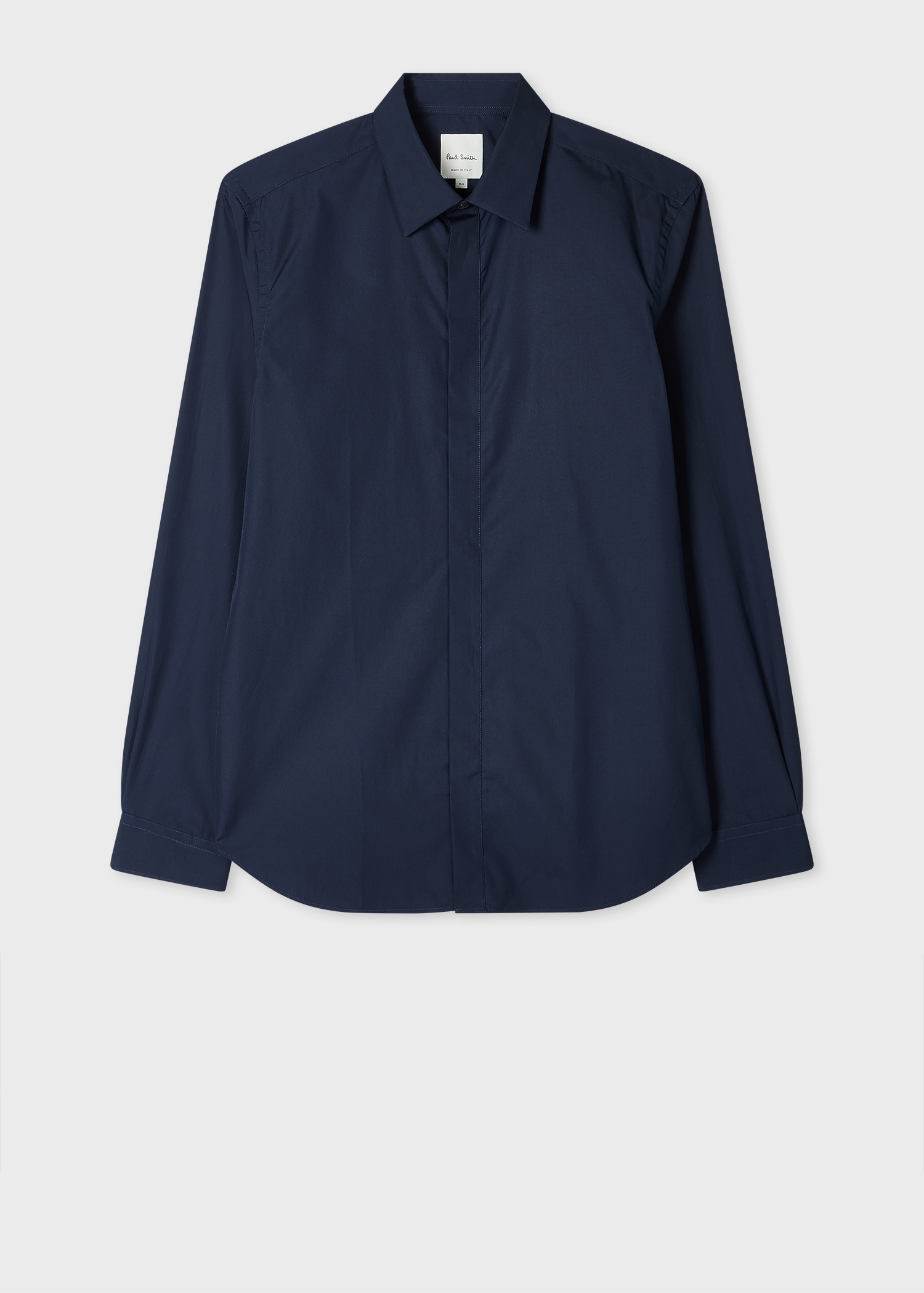 Made in Italy from a rich cotton in the iconic Thomas Mason fabric mill, this midnight blue long-sleeve shirt is cut for a slim fit and features a concealed placket. Adding a refined touch to your smart casual and formal occasions, the shirt is complete with 'Signature Stripe' lining to cuffs for a branded finishing touch. The Fit - Slim-Fit Product Code: M1R-656U2-L00050-49
