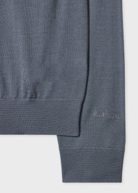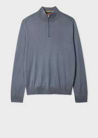 Made from 100% Merino wool for a lightweight and breathable finish, this steel blue sweater features a half-zip funnel neck design. Complete with internal 'Signature Stripe' trim, this sweater is finished with a tonal signature logo embroidered on the cuff. Product Code: M1R-239Z-P02093-70