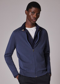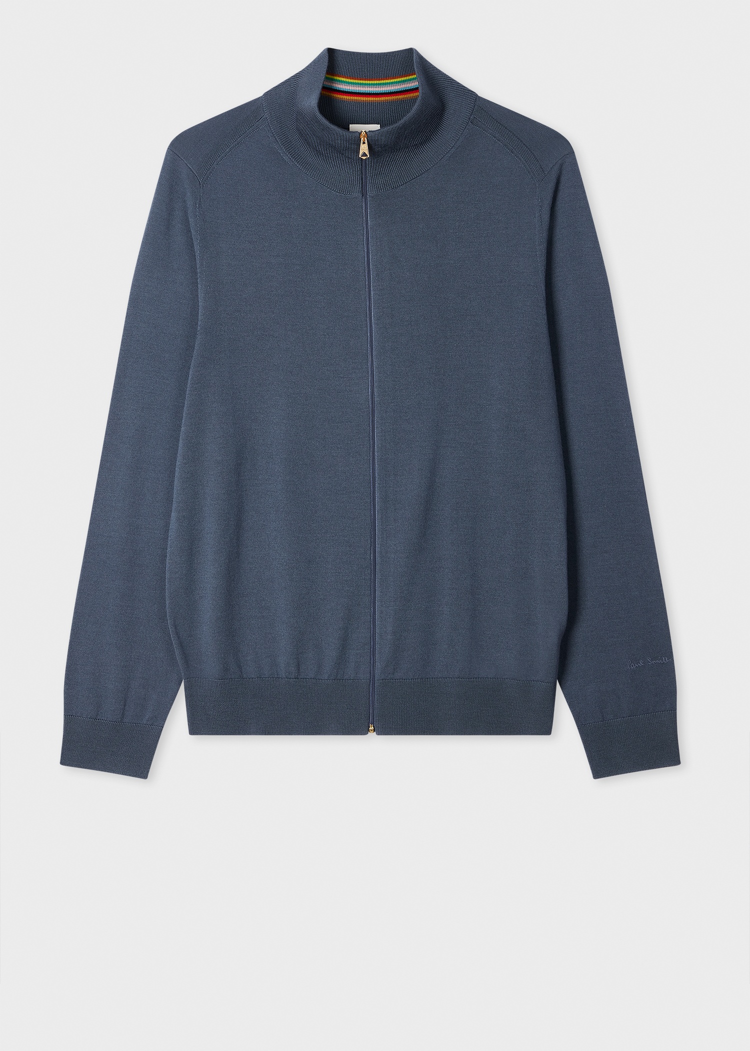 Made from rich merino wool, this lightweight knit features a full zip closure with a funnel neck, finished with a tie-shaped zip pull and 'Signature Stripe' tipping on the interior collar. The cardigan is complete with a ribbed neckline, cuffs, and hem with tonal stitching to the sleeves for elevated styling. The Fit - Classic-Fit Product Code: M1R-240Z-P02093-44C