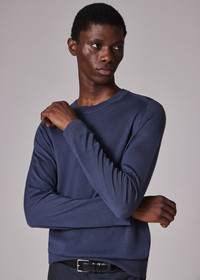 Made from a lightweight and breathable Merino wool with a soft handle finish, this stone blue crew neck sweater features our classic 'Signature Stripe' internally on the collar. Finished with tonal ribbed shoulder seams and a tonal signature logo embroidered on the cuff. The Fit - Classic-Fit Product Code: M1R-238Z-P02093-44C
