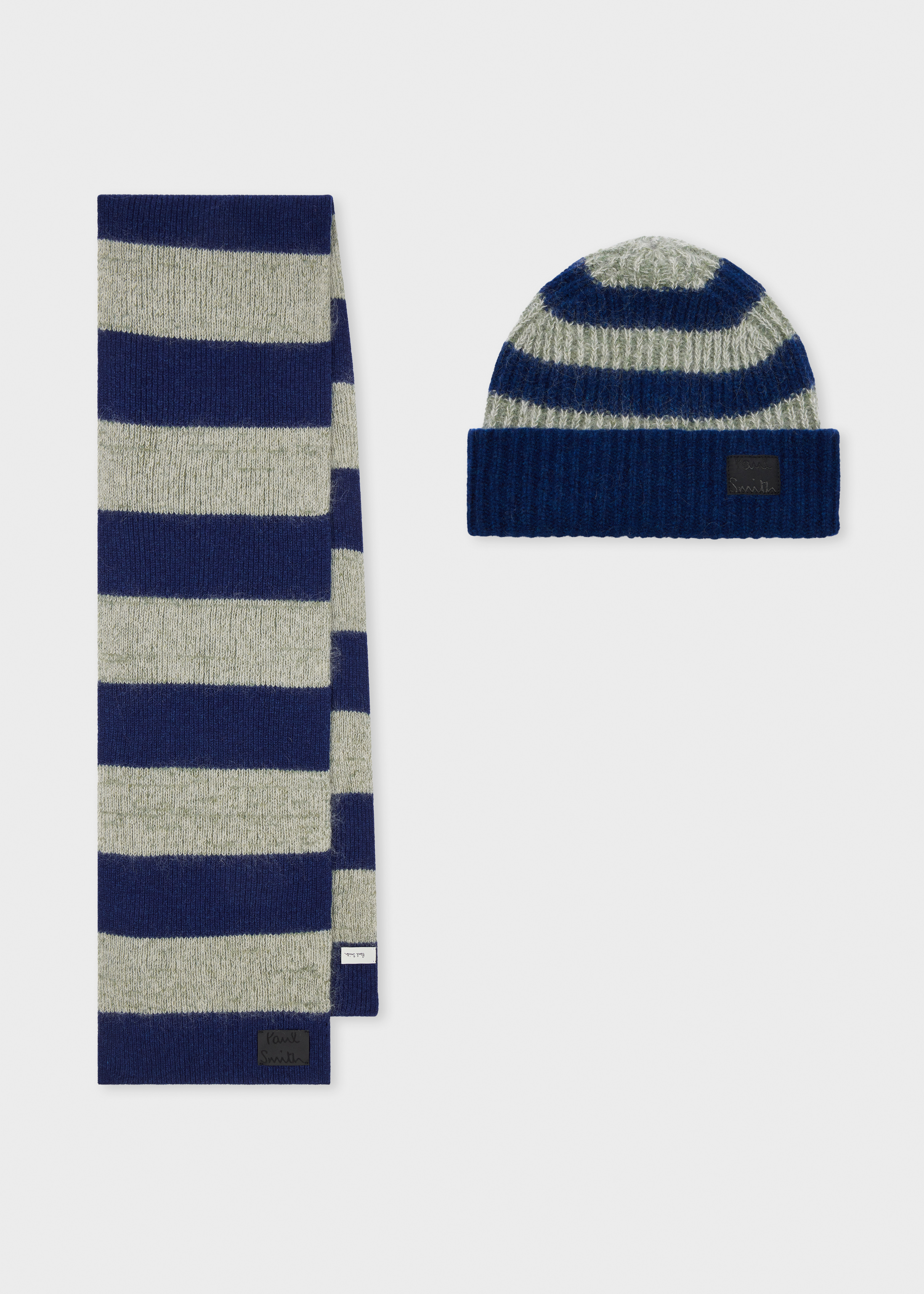 Made in Britain from a lambswool-mohair blend, this chunky rib knit hat and scarf set features a stripe pattern throughout. Complete with a signature Paul Smith logo label, this gift set is perfect for the colder months. Product Code: M1A-ECOMM-TGIFT2-47