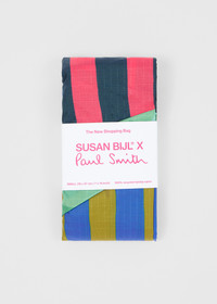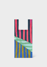 Susan Bijl X Paul Smith mixed stripe the new shopping bag, size small. A simple yet iconic design with tremendous volume. It makes any plastic bag irrelevant and replaces all other bags. Created with your daily essentials in mind, anytime, any place. The bag effortlessly folds due to its lightweight and resilient material; therefore a perfect portable bag to take with you. Product Code: GRB-BIJL-AHBGS2-92