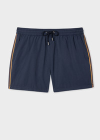 These navy blue, classic-fit swim shorts feature an 'Artist Stripe' grosgrain trim down both sides. These swim shorts are crafted from a fast-drying fabric made using recycled materials. 100% Recycled Polyamide Machine Washable Please enter your initials in the box provided above, with a maximum of three letters. If using our , please add 3 working days to any delivery estimate. Product Code: M1A-239DS-A40923-47