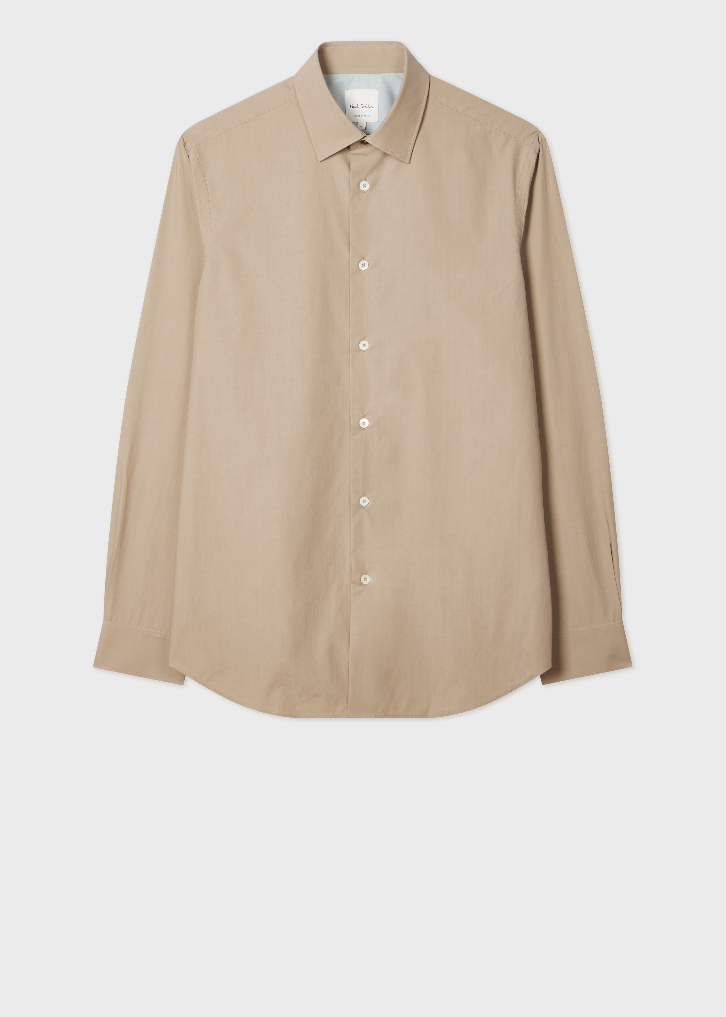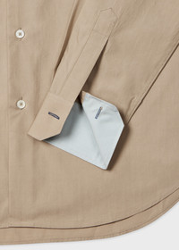 Made in Italy from a mercerised cotton poplin for a lightweight, crisp finish, this long-sleeve beige shirt is ideal for layering under a suit or a piece of knitwear. Cut for a smart tailored-fit, this shirt is finished with contrast yoke and cuff lining - for an added twist. The Fit - Tailored-Fit is slim through waist and wider through the chest and hem. Product Code: M1R-800P-T02811-73