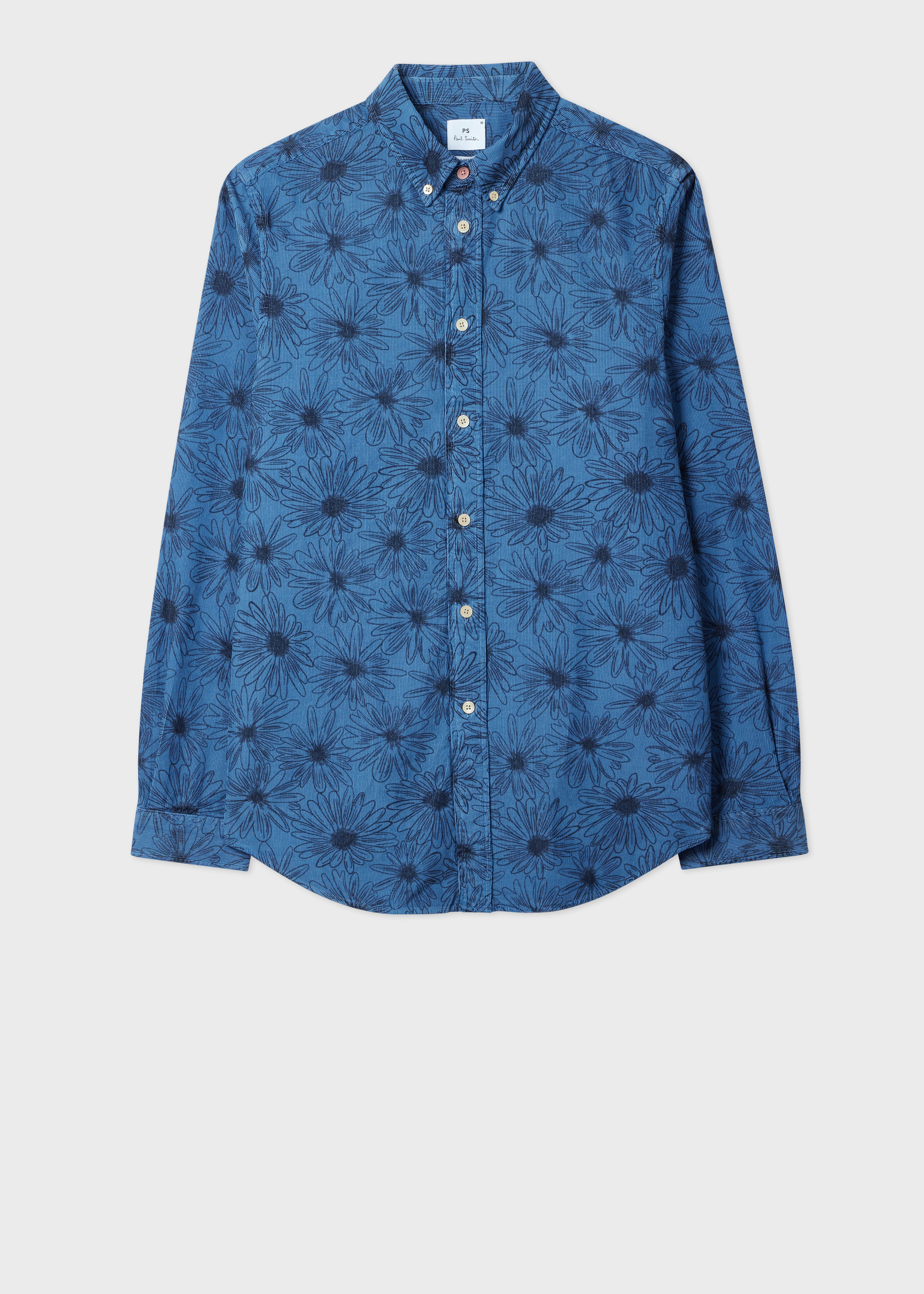 Made from 100% organic cotton needle cord, this light blue shirt features an all-over floral print. Cut for a tailored-fit, this shirt is finished with a button-down collar. The Fit - Tailored-Fit Product Code: M2R-599R-T22508-44