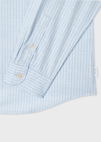 Made from 100% herringbone-twill cotton, this light blue shirt features a melange effect finish with an additional pinstripe detail. Cut for a tailored-fit, this casual shirt is finished with a soft point collar and a curved hemline with PS logo tab label. The Fit - Tailored-Fit Product Code: M2R-149T-T22490-40