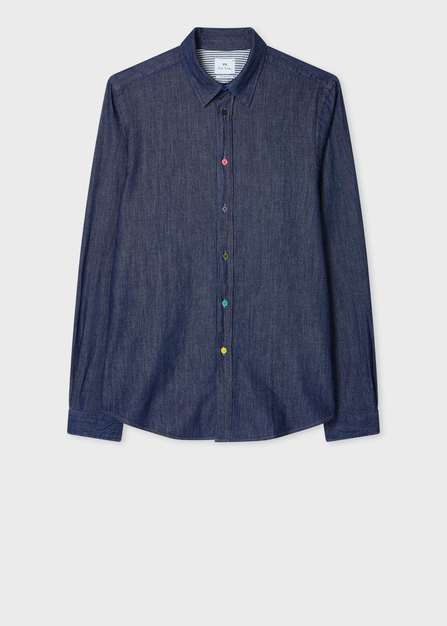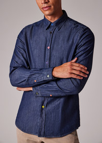 Made from 100% organic cotton denim with a dark rinse finish, this long-sleeve shirt is cut for a tailored-fit. Complete with multicolour buttons and stripe yoke and cuff lining for a signature twist to this classic style The Fit - Tailored-Fit is cut for a slightly slimmer fit through the waist. Product Code: M2R-612P-T22096-R