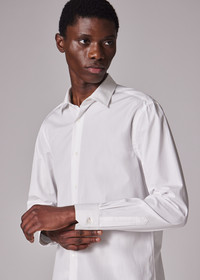 Made in Italy from a lightweight end-on-end cotton, this classic white shirt features a point collar with removable bones. Cut for a tailored-fit, this shirt is ideal for days in the office worn under a suit or Merino knitwear. 100% Cotton Machine washable Made in Italy The Fit Tailored-Fit is cut slimmer through the waist, and wider through the chest and hem. Product Code: M1R-800P-R00054-01