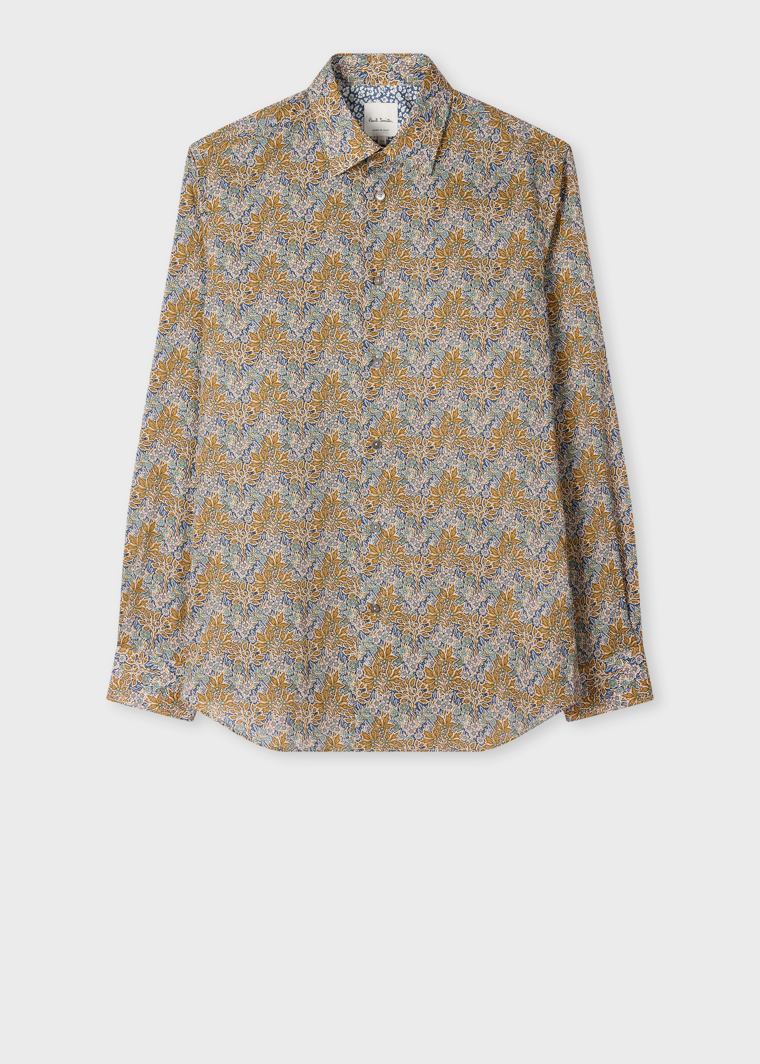 Made in Italy from organically grown cotton for a soft and lightweight construction, this shirt features our seasonal 'Liberty Floral' print. Mixing muted yellow with blue and a hint of pink, this shirt is cut for a tailored-fit and has a point collar with removable bones. The Fit - Tailored-Fit is cut slimmer through the waist, and wider through the chest and hem. Product Code: M1R-800P-V02901-43