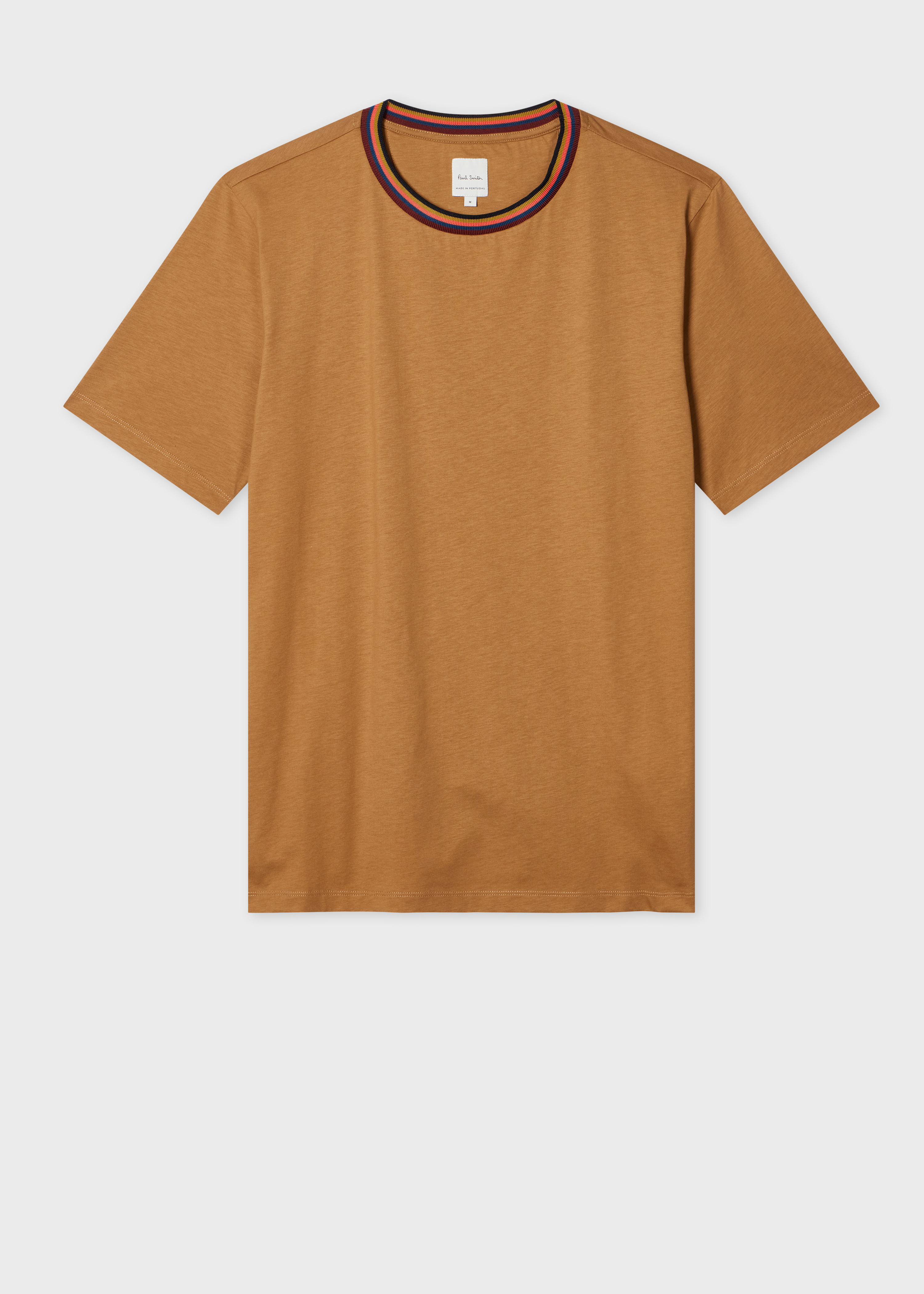 Cut from 100% organically grown cotton, this tan T-shirt features our classic 'Artist Stripe' on the collar - for a signature flash of colour. 100% Organically Grown Cotton Machine washable The Size Model wears a size M Model measures: Height 6’0’’ / 183cm | Chest 38’’ / 96.5cm | Waist 32’’ / 81cm The Fit - Regular-Fit is relaxed through the body. Product Code: M1R-697PS-H00084-61