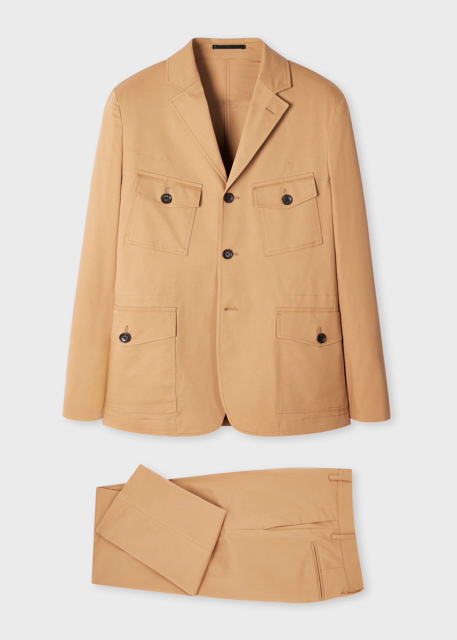 Made in Portugal from an organic fine cotton twill with stretch for added comfort, this tan co-ord features a utility-inspired blazer and straight-fit trousers. The blazer features a three-button fastening and four button-closure patch pockets. The chinos are finished with a zip fly and button closure. Product Code: M1R-COORD-N01934-61A