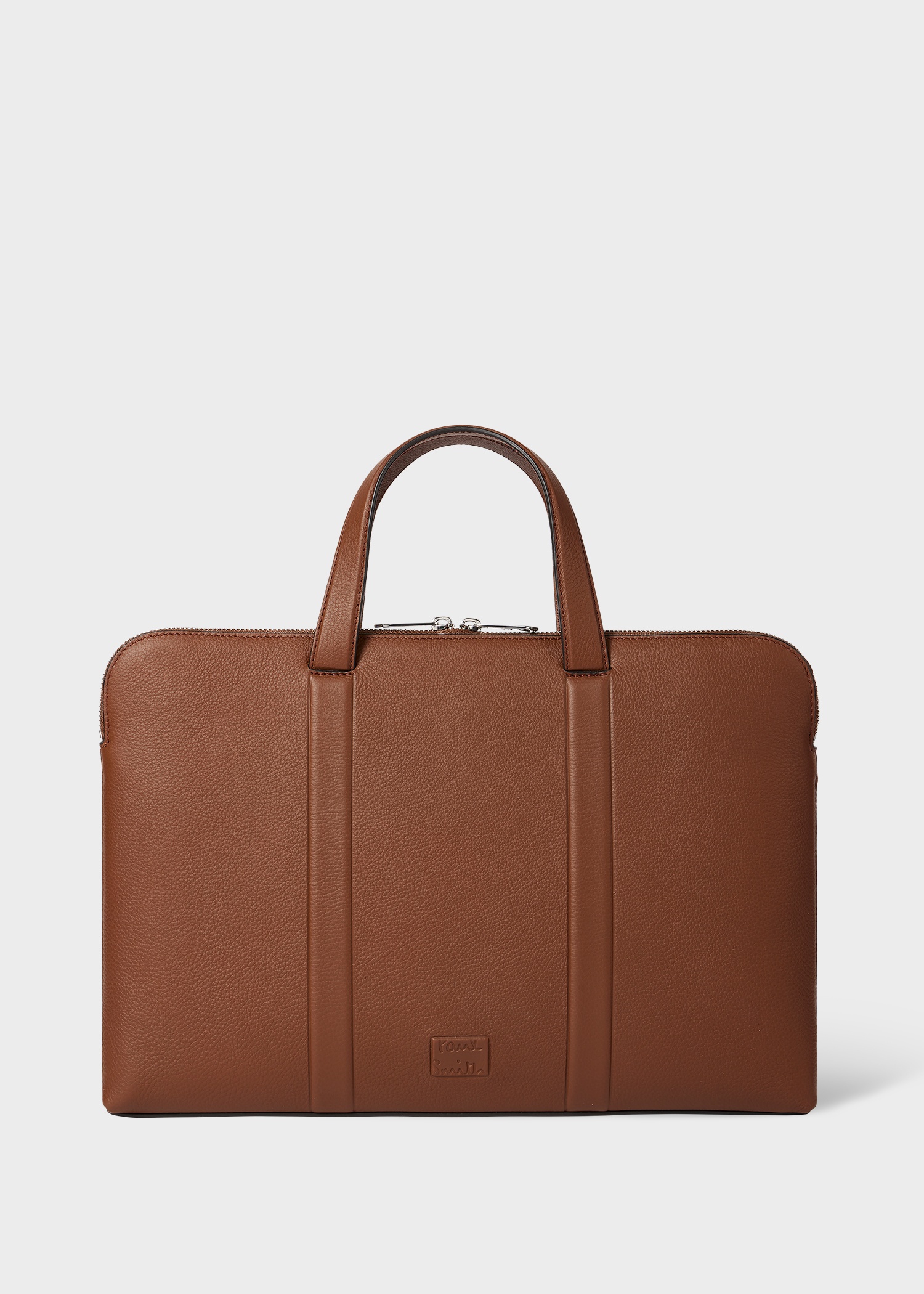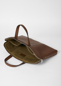 Made from premium calf leather, this tan folio features a slimline design with tonal handles. Complete with 'Signature Stripe' side trims, this bag is finished with a twill lining and two slip pockets. Product Code: M1A-8158-TLEPIP-62