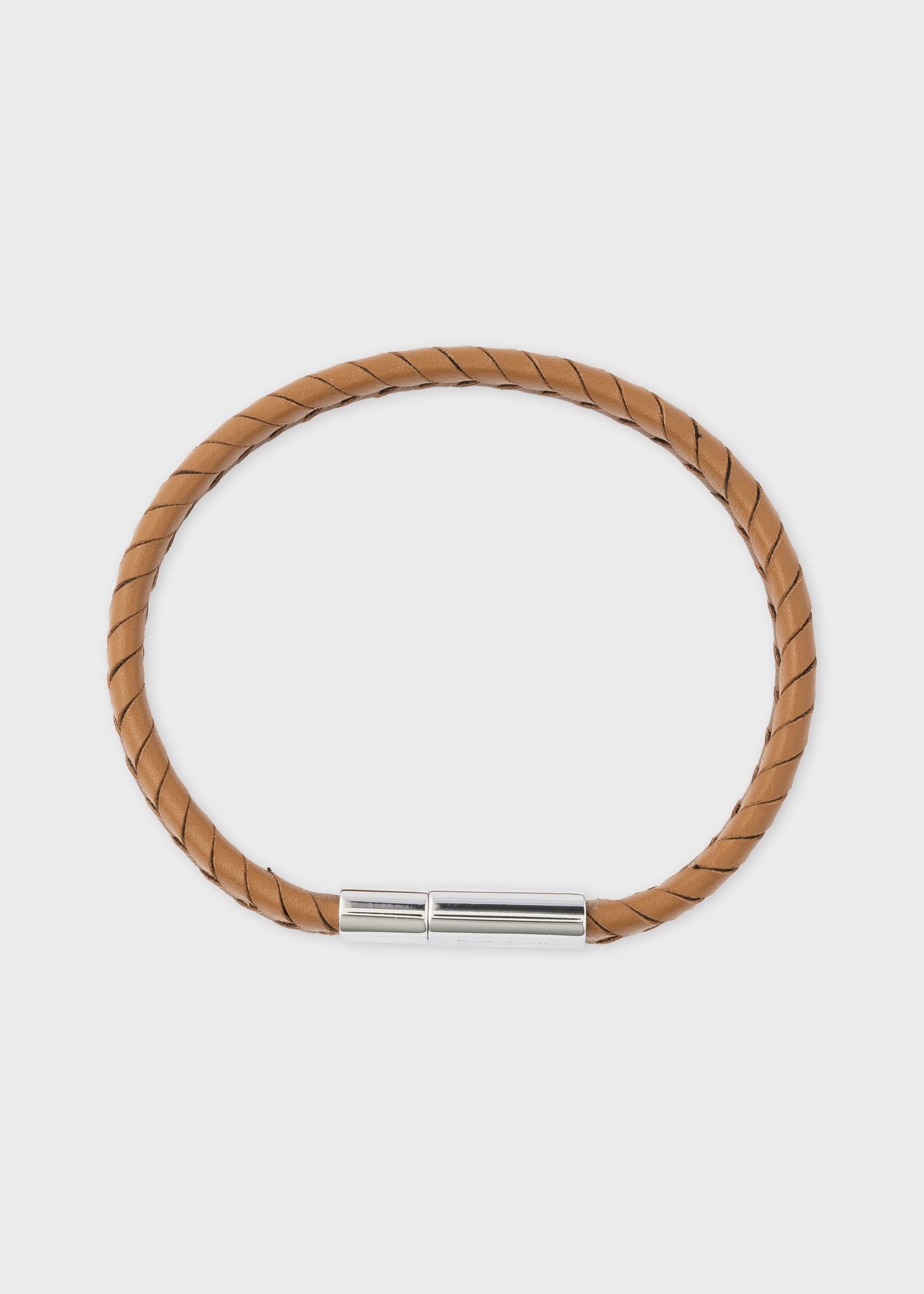 This bracelet is made from two-tone tan braided leather with a silver closure featuring Paul Smith signature. 100% Leather with 60% Zinc, 40% Copper Closure Product Code: M1A-BRAC-MTWO-62