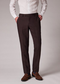 Made in Portugal from 100% pure linen for a lightweight and breathable finish, these dark brown trousers feature a tapered fit with a narrow hem. Complete with hook-and-eye fastening and rear welt pockets. The Fit - Tapered-Fit - Classic tailored waistband with extension - Low rise - Tapered through knee and calf - Narrow hem Product Code: M1R-925N-R01427-69