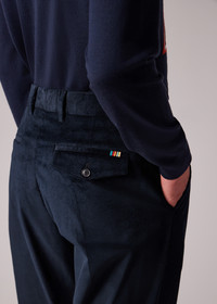Made in Portugal from 12 wale cotton and wool-blend corduroy, these navy trousers feature a tapered-fit with a single pleat front. The Fit - Tapered-Fit these trousers are relaxed through the hip to the calf and tapered at the hem. Product Code: M1R-408Z-T02065-47