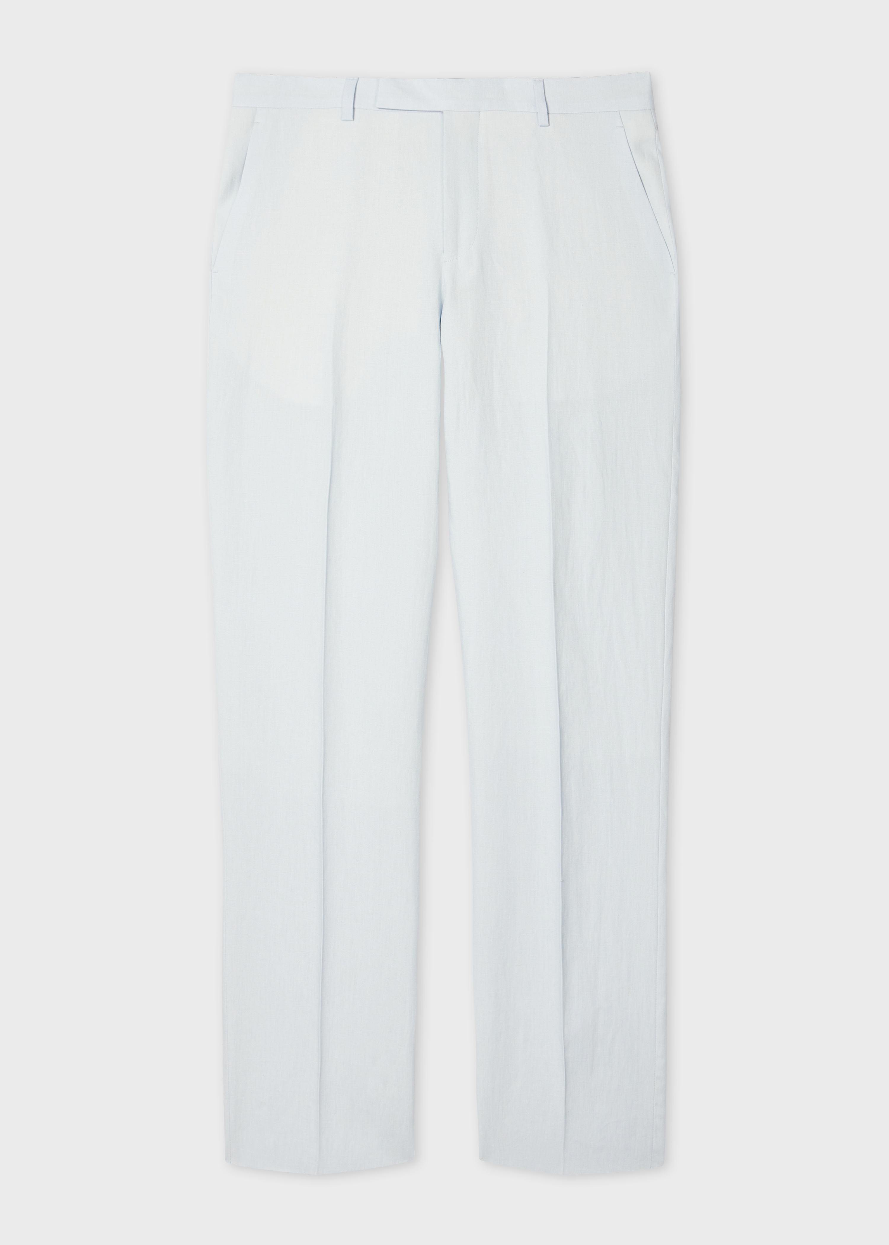 Made in Portugal from 100% pure linen, these trousers are offered in a timeless summer-ready pale blue tone. Cut for a tapered-fit with a narrow hem, pair with the matching blazer for a timeless warm weather tailored look. The Fit - Tapered-Fit - Classic tailored waistband with extension - Low rise - Tapered through knee and calf - Narrow hem Product Code: M1R-925N-R01427-41