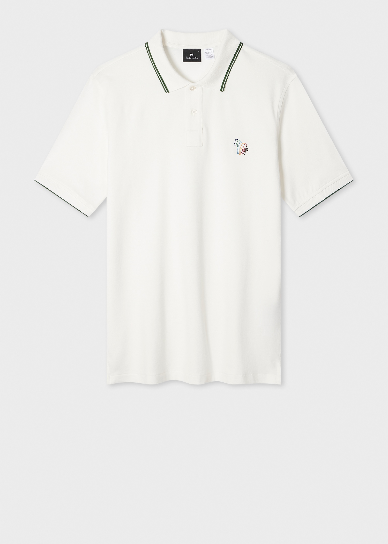Made from organic cotton pique with stretch for added comfort, this white polo shirt features our 'Broad Stripe Zebra' embroidered on the chest. Cut for a regular-fit, this polo is finished with dark green tipping on the collar and cuffs. The Fit - Regular-Fit is relaxed through the body. Product Code: M2R-151LE-T21511-02A