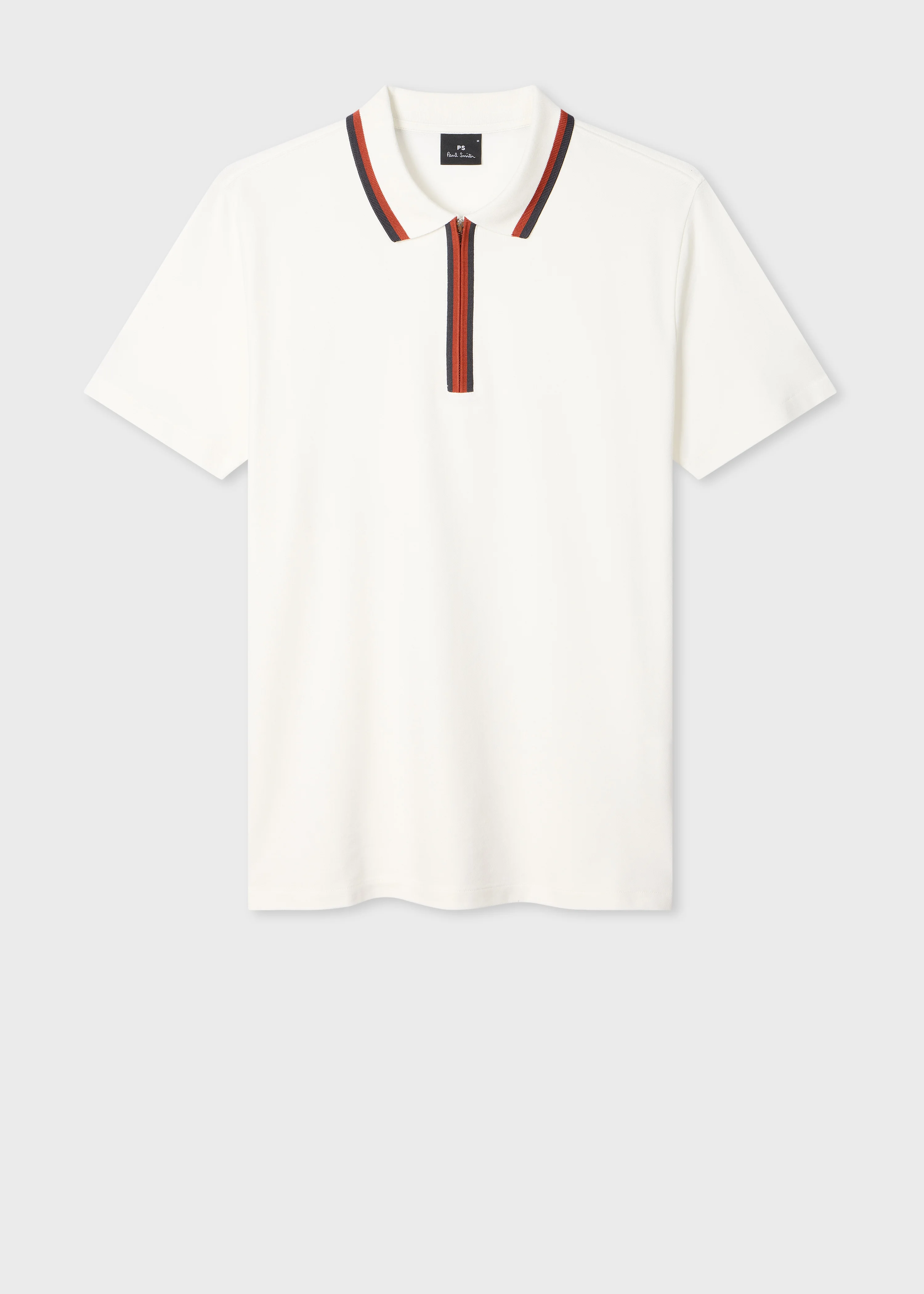 White Contrast Tipping Zip Polo Shirt