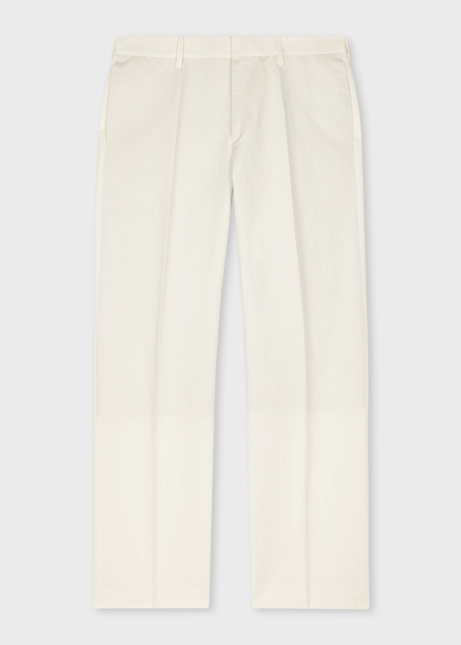 Made in Portugal from a cotton and linen-blend twill, these white trousers feature a subtle slub finish throughout. Cut for a looser shape, these trousers are finished with an internal rubber grip on the waistband, to help keep shirting secure when tucked in. 58% Cotton, 42% Linen Dry clean only Made in Portugal The Fit Straight-Fit Product Code: M1R-410Z-P02331-02