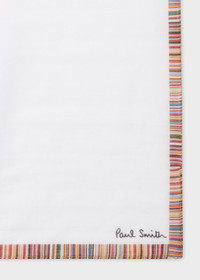 Made in Italy from 100% cotton, this white pocket square features 'Signature Stripe' borders. This pocket square is complete with a black Paul Smith signature logo in the corner and rolled, stitched edges. Size: 33 x 33cm Woven, 100% Cotton Dry clean only Made in Italy Product Code: M1A-854D-AS05-01