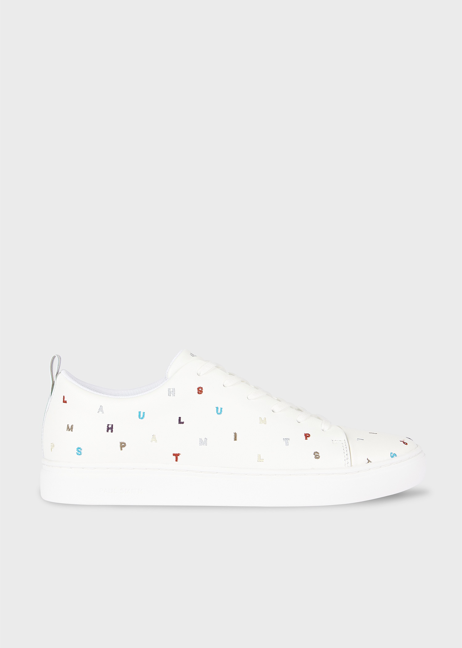 Elevate your footwear collection with these 'Lee' white trainers featuring a distinctive multicoloured letters embroidery motif for a signature quirky finish. Crafted with a premium leather upper and durable rubber sole, they combine contemporary style with everyday comfort. A versatile addition to your casual ensemble. Product Code: M2S-LEE54-TLEA-01