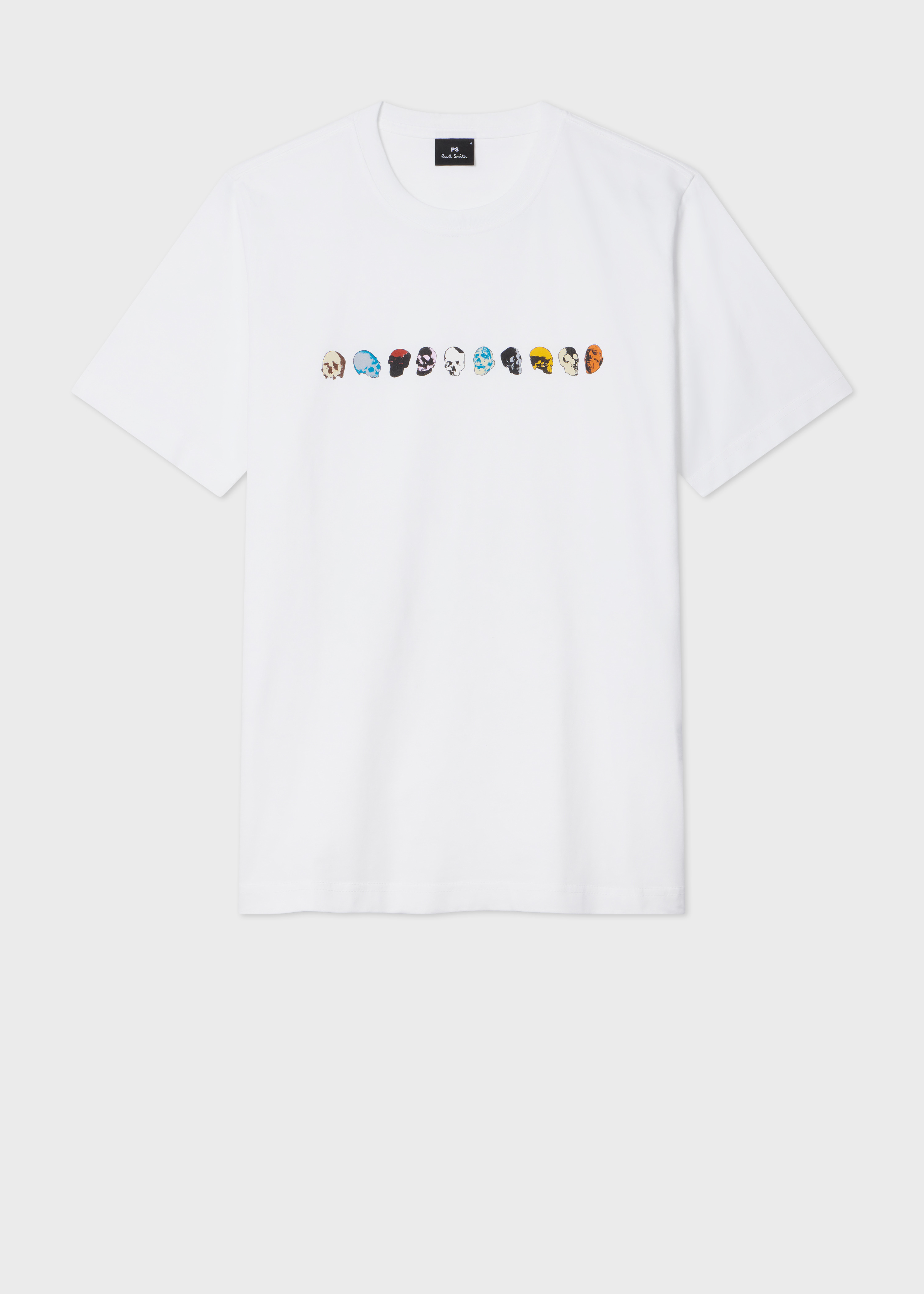 Made from organically grown cotton, this white crew neck T-shirt features a seasonal 'Mini Skulls' print. Cut for a regular-fit, this T-shirt is finished with a ribbed collar. The Fit - Regular-Fit is relaxed through the body. Product Code: M2R-011R-VP8263-01