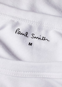 Made from soft modal with stretch for comfort, this three pack of men's T-shirts are offered in white. Complete with a stitched on collar and tonal Paul Smith signature logo on the sleeve. The Fit - Regular-Fit Product Code: M1A-388FH-P3PK-01