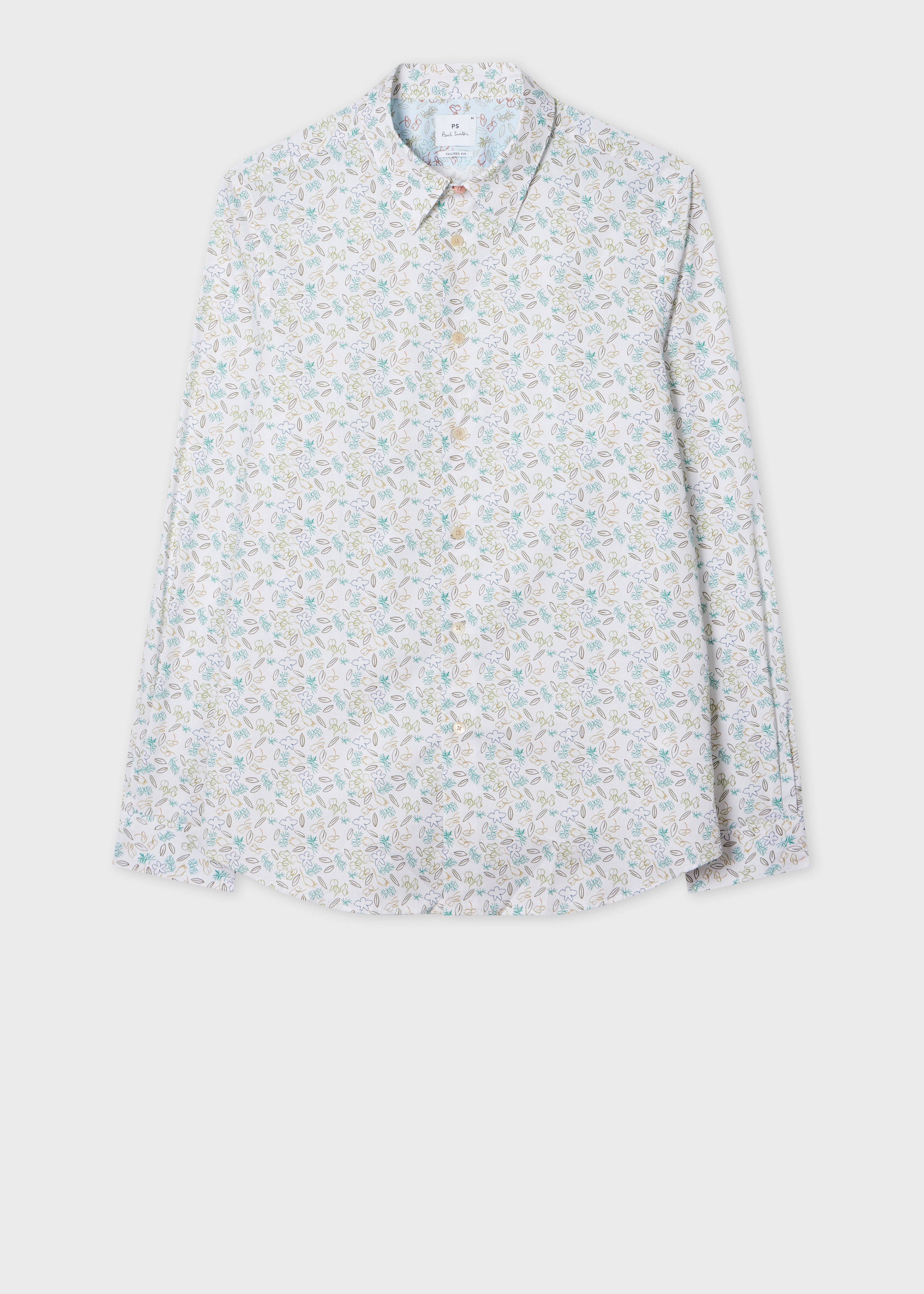 Crafted from a soft organic cotton-blend, this white 'Globe Flower' shirt features a colourful print throughout. Cut for a tailored-fit, this versatile shirt is perfect for transitional, formal styling. The Size - Model wears a size M - Height 6’0’’ / 183cm - Chest 38’’ / 96.5cm - Waist 32’’ / 81cm The Fit - Tailored-fit is slimmer through the shoulders and body for a sleek, contemporary silhouette - We recommend taking your normal size for this shirt - For a more relaxed fit, consider sizing up Product Code: M2R-149T-T22411-01