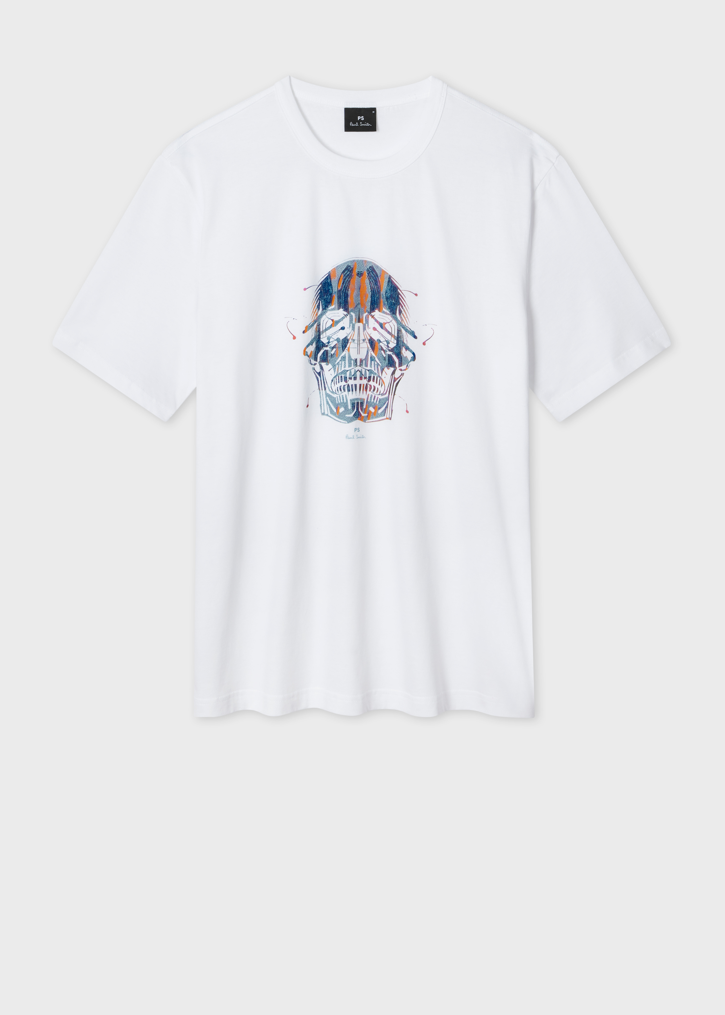 Made from 100% organic cotton for a soft finish, this white T-shirt features a seasonal 'Painted Skull' print. Cut for a regular-fit and suitable for everyday wear, this T-shirt is finished with a stitched-on ribbed collar. 100% Organic Cotton Machine washable The Size Model wears a size M Model measures: Height 6’0’’ / 183cm | Chest 34’’ / 86cm | Waist 27.5’’ / 70cm The Fit - Regular-Fit is relaxed through the body. Product Code: M2R-220X-TP5242-01