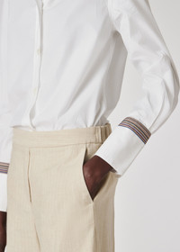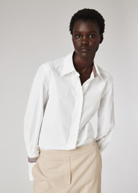 Made in Italy from 100% soft touch cotton, this white shirt is cut for a relaxed-fit with a feminine silhouette. With 'Signature Stripe' trimmed cuffs, this shirt is ideal for both smart-casual and formalwear. Made in Italy 100% Cotton Machine Washable Product Code: W1R-329B-M10955-01