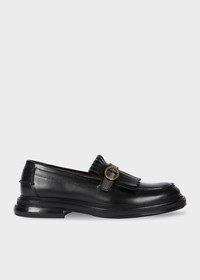Made in Portugal, the black 'Belinho' loafers boast a sturdy leather upper, decorated with tassel and buckle strap detailing for a modern touch. Complete with tonal stitching throughout and a leather sole embossed with stripe detailing for a secure fit. The contrast-rich leather interior features 'Signature Stripe' tape detailing to the rim and is complete with gold-foil signature branding for a luxury touch. Product Code: W1S-BHO01-TLEA-79