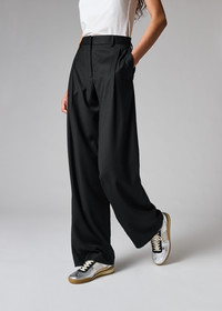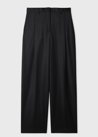 Women's Black Flannel Wide-Leg Trousers