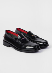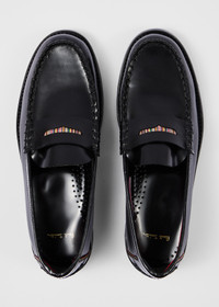 Made in Portugal from premium calf leather uppers, these black 'Laida' loafers feature a classic design with 'Signature Stripe' detailing for an added twist. Finished with contrasting interior and treaded stripe soles. 100% Leather Uppers 100% Leather Soles Made in Portugal Product Code: W1S-LAA05-NLEA-79