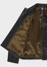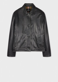 Elevate your layering with this lightweight black leather jacket, decorated with contrast stitching for a modern touch. Cut to a boxy slightly cropped fit, the jacket features twin-lined pockets and contrast viscose lining. Style the jacket with soft tailored pieces for an understated look. 100% Leather Lining: 100% Viscose Special leather cleaning only Real leather is a natural product, variations and imperfections are part of the appeal that makes each item unique. The Fit Regular-Fit is relaxed through the body. Product Code: W2R-298JL-P31161-79