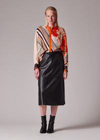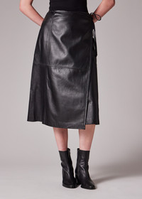 Crafted from a rich leather composition, this midi skirt showcased a wrapped tie design. Decorated with tonal stitching throughout, the skirt can be paired with soft, tailored pieces for a smart fit or a tee for elevated off-duty styling. The Size Model wears a size 40 (UK 8) Model measures: Height 5’11’’ / 180cm | Chest 30½’’ / 78cm | Waist 24’’ / 61cm The Fit - Regular-fit Product Code: W1R-296SL-T11142-79