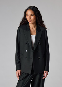 Made in Italy from a wool and cashmere-blend flannel cloth for a soft finish, this black two-button blazer features a double-breasted fastening. Cut to a straight fit with subtle shaping to the back and an exaggerated peak label for a feminine feel. The blazer features tonal soft viscose lining. The Size Model wears a size 40 (UK 8) Model measures: Height 5’11’’ / 180.5cm | Chest 30½’’ / 78cm | Waist 23’’ / 59cm The Fit - Straight-Fit Product Code: W1R-369JA-T00109-79