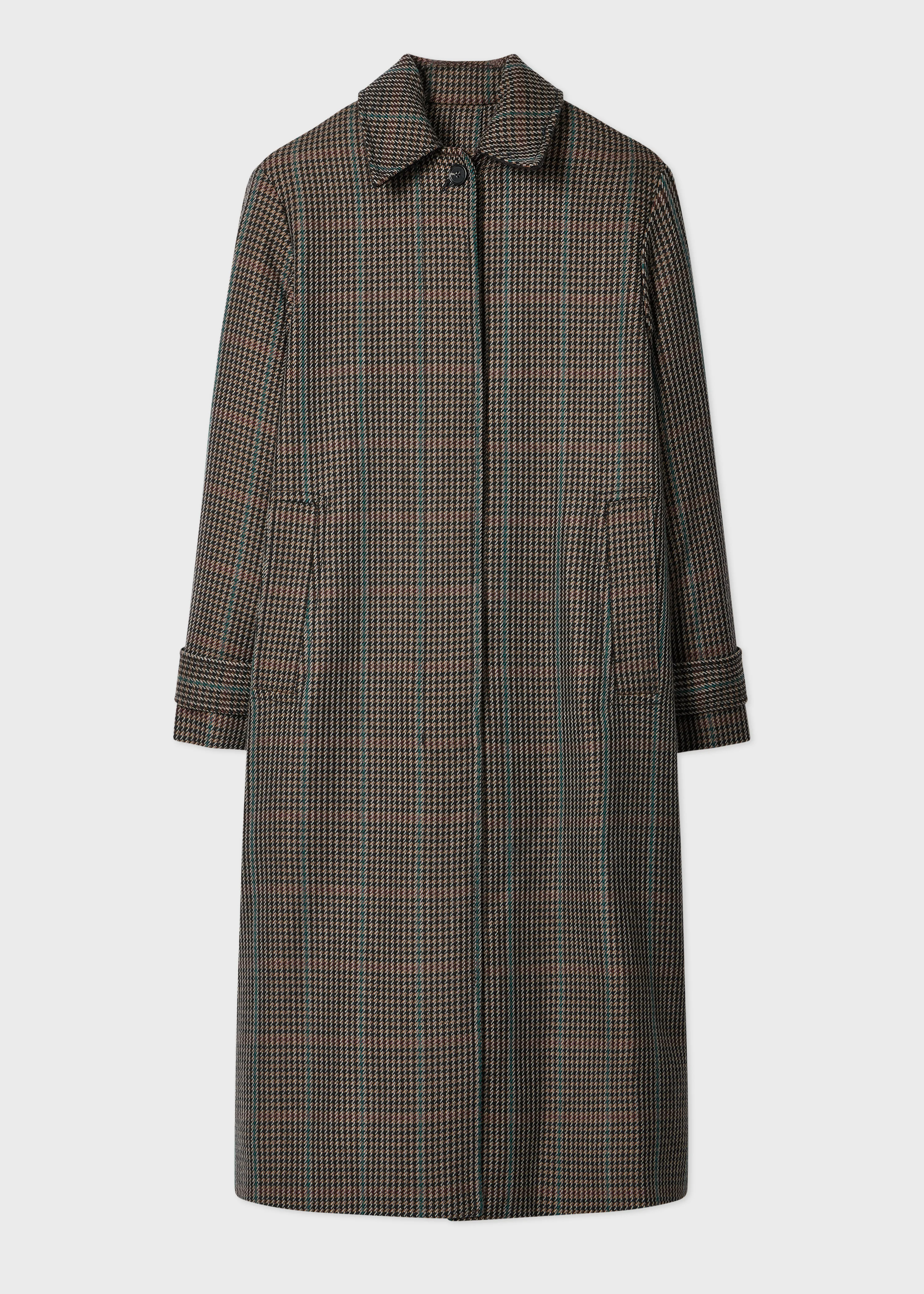 Women's Brown Multi-Houndstooth Wool-Blend Coat