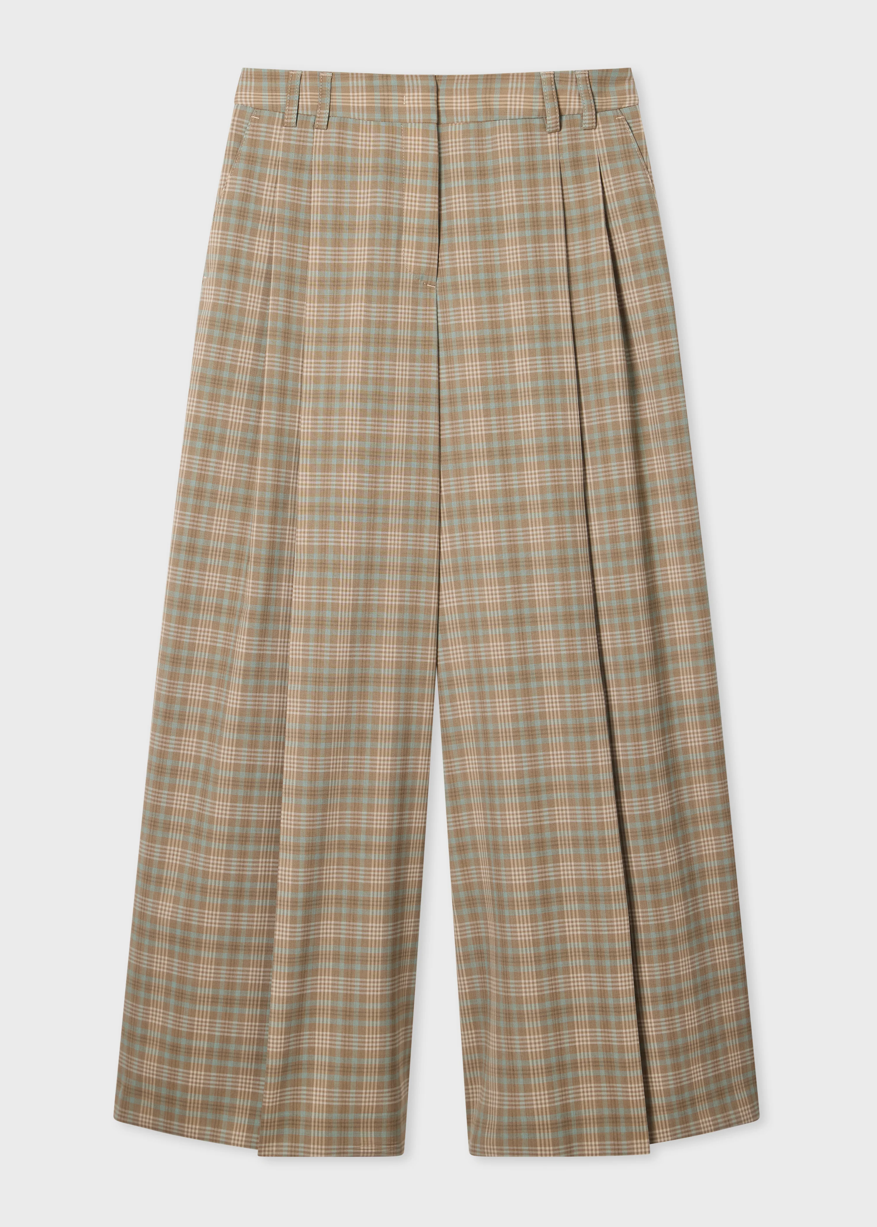 Made in Portugal from a stretchy wool-blend, these cropped culotte trousers are cut for a wide fit and feature a tonal cream-and-blue check design throughout. Finished with elegant pleats for a feminine touch, they pair beautifully with a contrasting blouse or can be styled as a coordinated set with a matching blazer. The Size Model wears a size 40 (UK 8) Model measures: Height 179cm / 5'10'' | Chest 77cm / 30.5'' | Waist 60cm / 23.5'' The Fit - Wide-Leg Product Code: W2R-369T-V31395-68