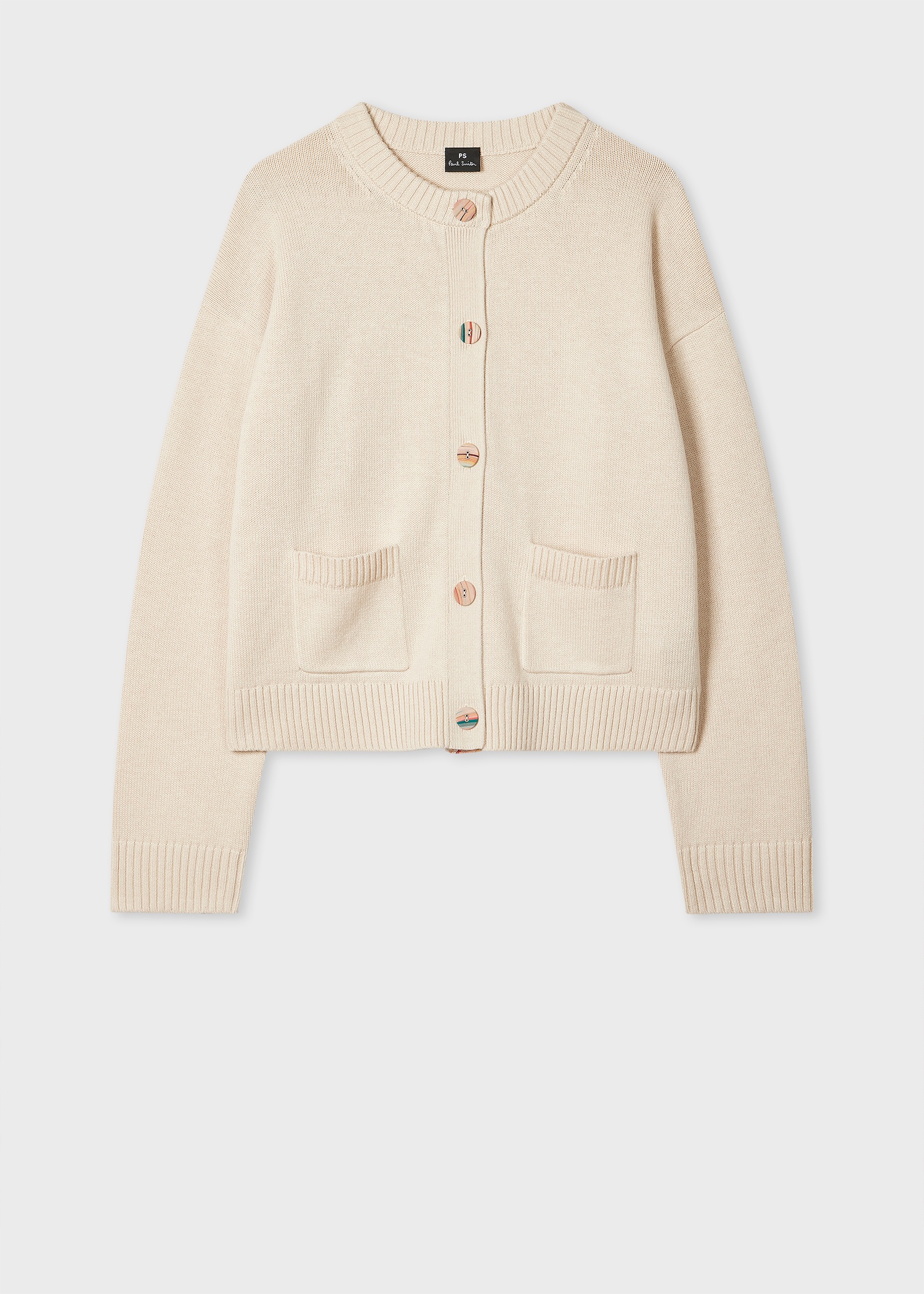 Crafted from a luxurious blend of wool and cotton, this cream knitted cardigan provides versatile style with a classic button-through design with a 'Swirl' trim placket. Featuring a refined silhouette, this cardigan can be effortlessly styled over a simple tee or elegant blouse for a polished everyday look. The Fit - Regular-Fit is relaxed through the body. Product Code: W2R-585N-T31330-05
