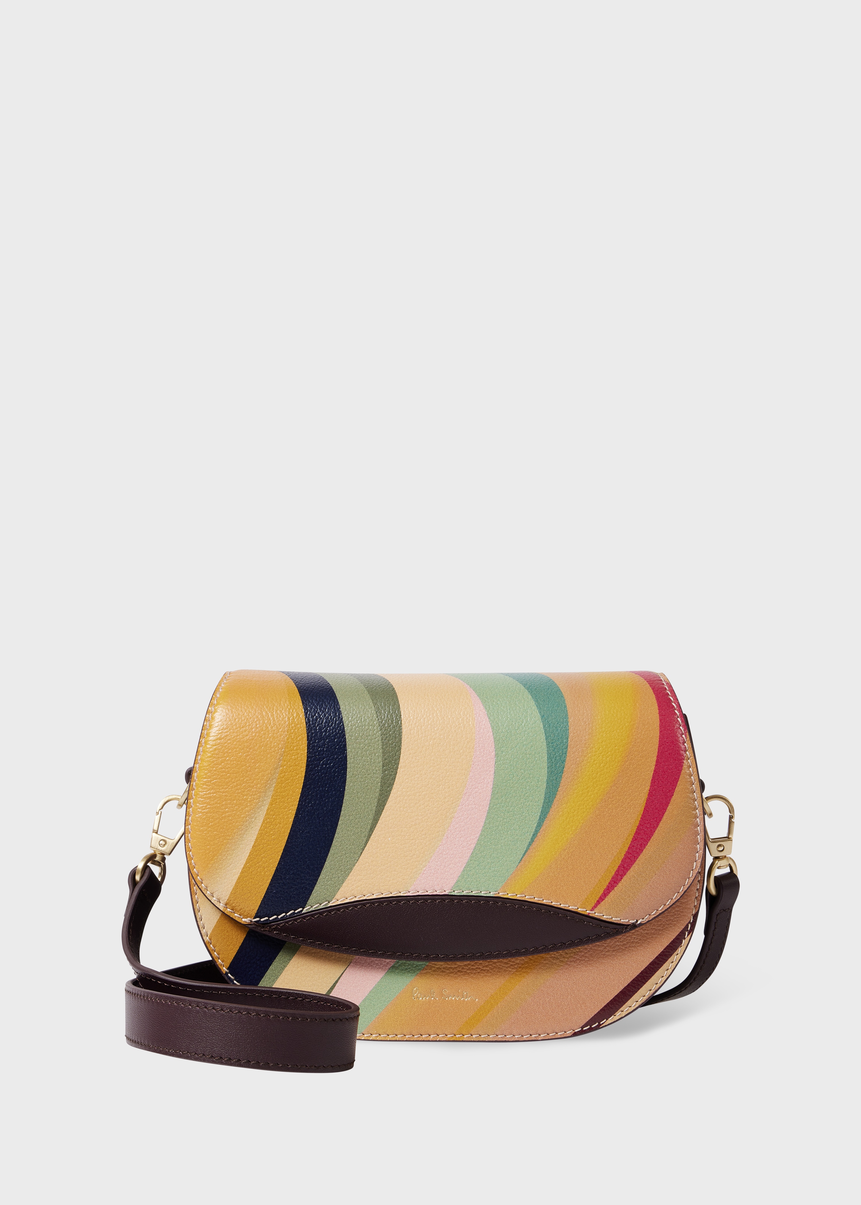 Made from a rich leather composition, this compact saddle bag features a staple 'Swirl' faded print with block-colored leather panels for an elevated styling. With a secure Magdot fastening, the bag features a removable strap and spacious interior compartment and side compartment for organised storage. Product Code: W1A-8159-GSWIRL-90