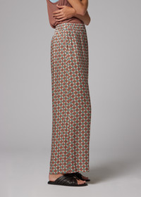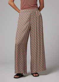 Crafted in Portugal from lightweight viscose, these wide-leg trousers feature a distinctive geometric square print for an elevated finish. Designed with a comfortable elasticated waistband. Pair with the coordinating shirt for a striking, head-to-toe look. The Size Model wears a size 40 (UK 8) Model measures: Height 179cm / 5'10'' | Chest 77cm / 30.5'' | Waist 60cm / 23.5'' The Fit - Wide-Leg Product Code: W2R-391T-V31436-18