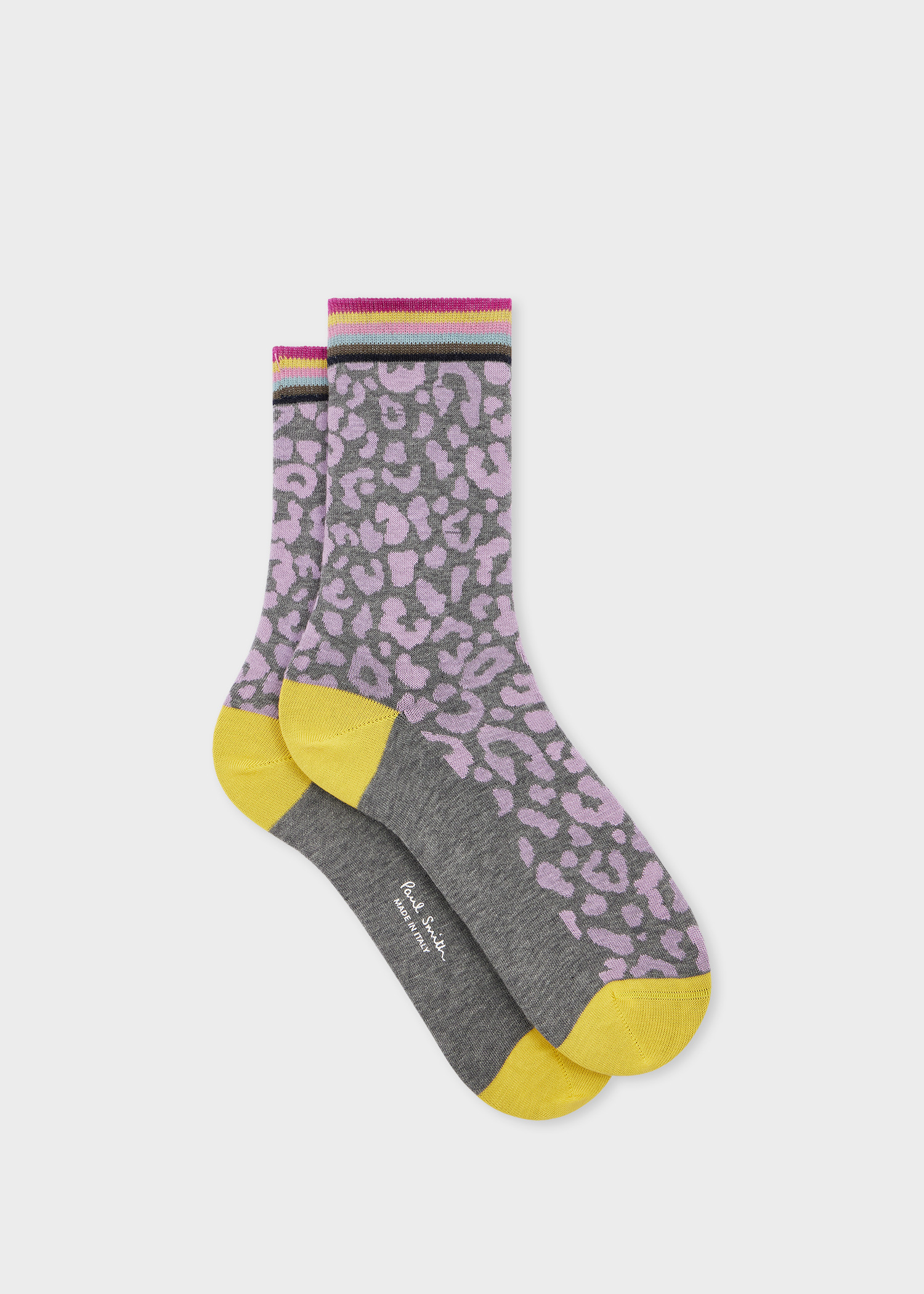 Made in Italy from an organically grown cotton blend, these unique socks feature a leopard print and tonal colour block design for a distinctive touch. They are complete with subtle branding. Product Code: W1A-086MO-T780-76