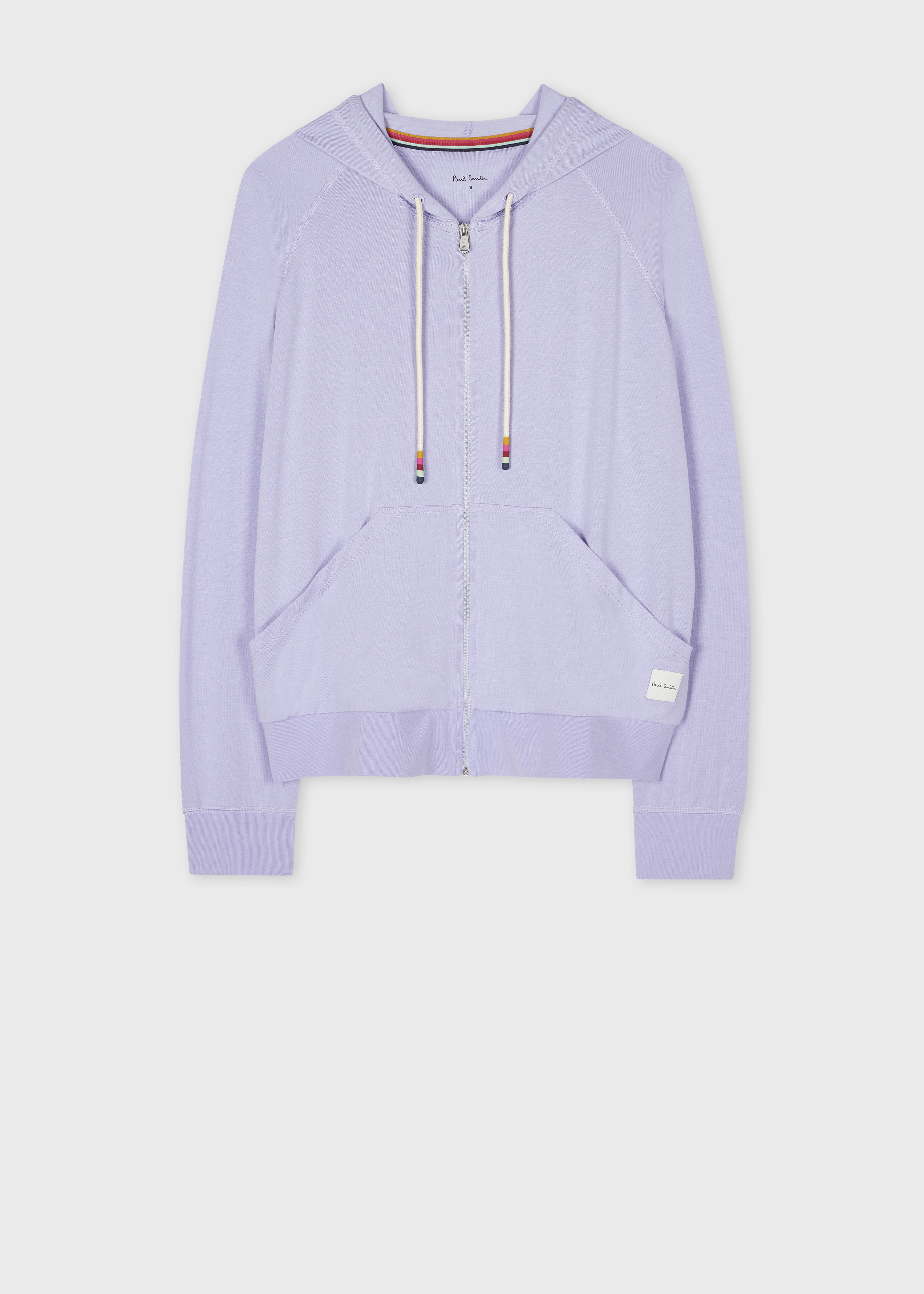 Made from a soft modal-blend jersey, this lilac zip lounge hoodie features a drawstring with 'Swirl Stripe' tips. Complete with two front pouch pockets, this hoodie is finished with a signature logo patch. The Size Model wears a size M Model measures: Height 5’11’’ / 180.5cm | Chest 30½’’ / 78cm | Waist 23’’ / 59cm The Fit Regular-fit is relaxed through the body. Product Code: W1A-796-PU336-51