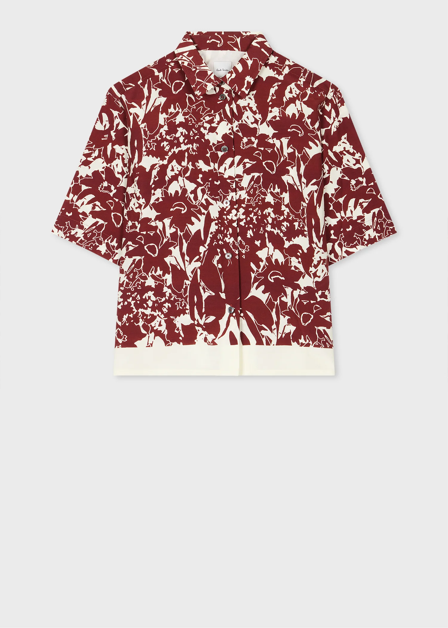Women's Maroon and Ecru 'Avant Garden' Short-Sleeve Shirt