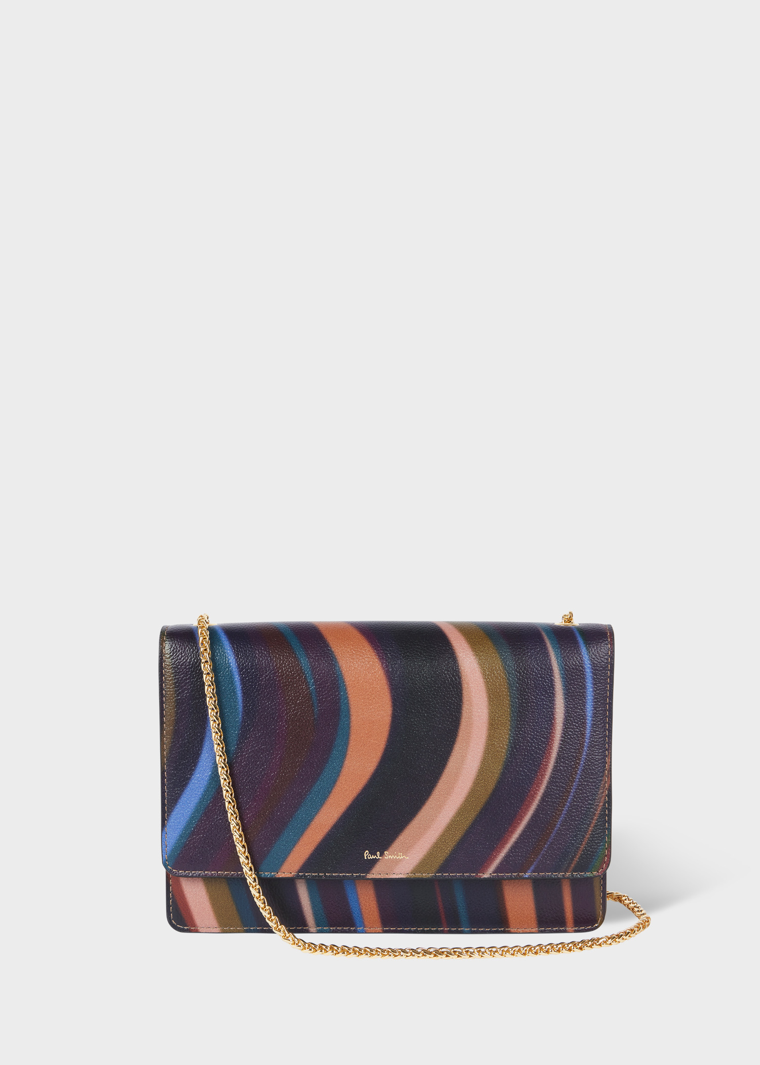 Made in Spain from a textured leather composition, this pouch bag features a removable gold-hardware chain strap, adding an elegant touch. The pouch features a spacious interior with three compartments, including a zipped pocket for added security. Complete with interior card slots and an additional pocket on the back. Finished with signature foil branding, this compact bag is the perfect companion this season. Product Code: W1A-8215-TWSWIR-PR