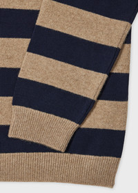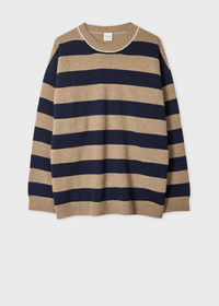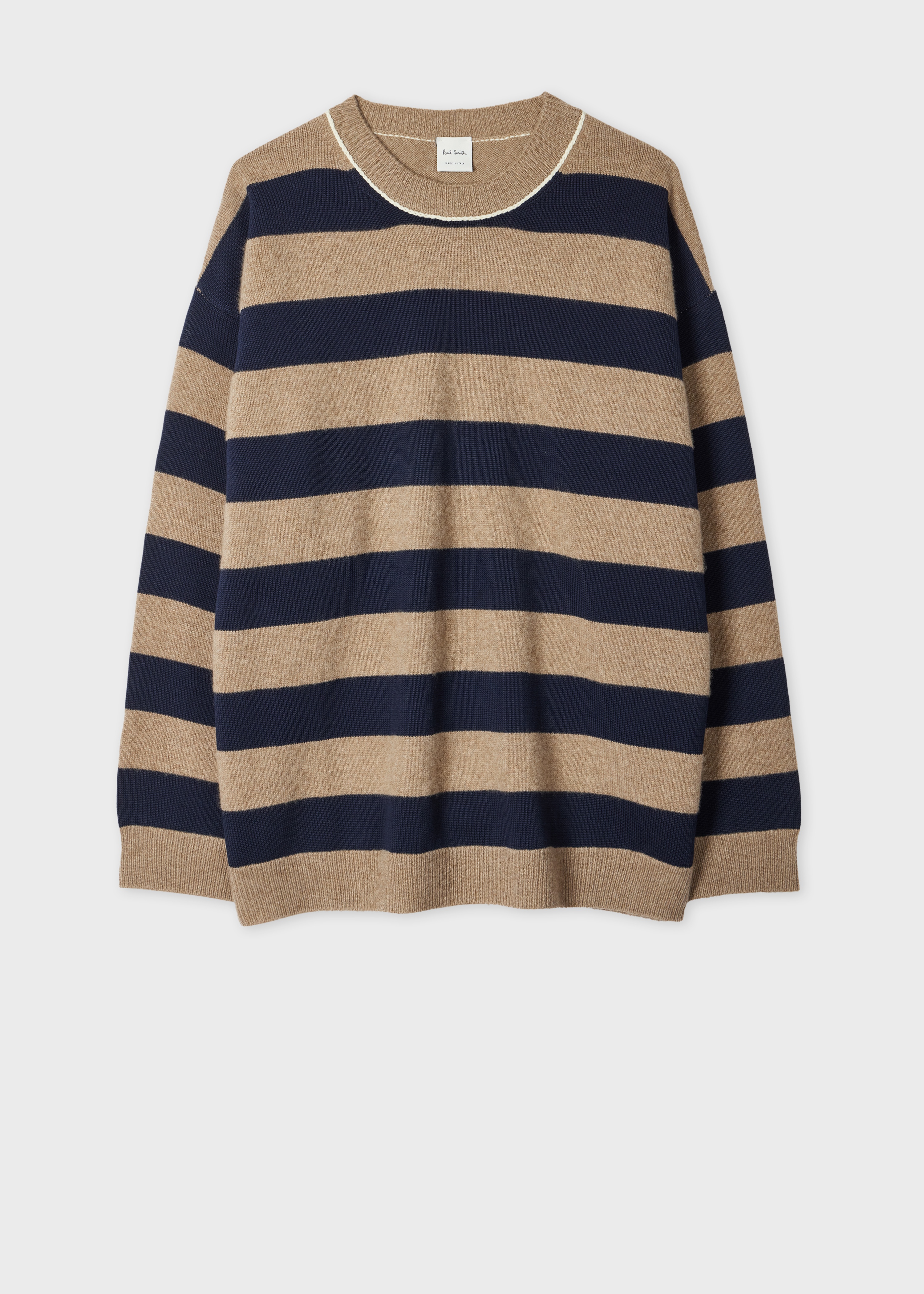 Women's Navy and Oatmeal Lambswool-Blend Striped Sweater