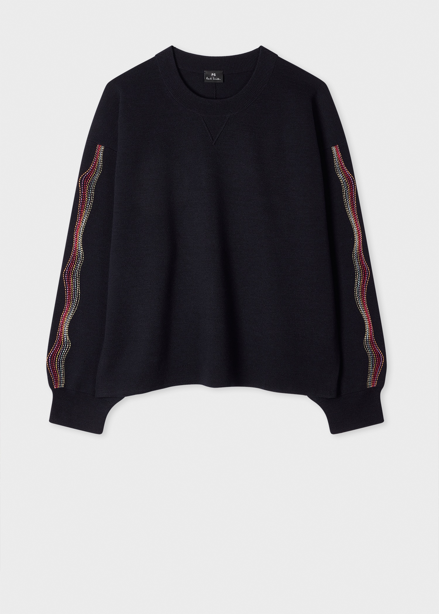 Women's Navy 'Swirl' Embroidered Sleeves Knitted Sweater