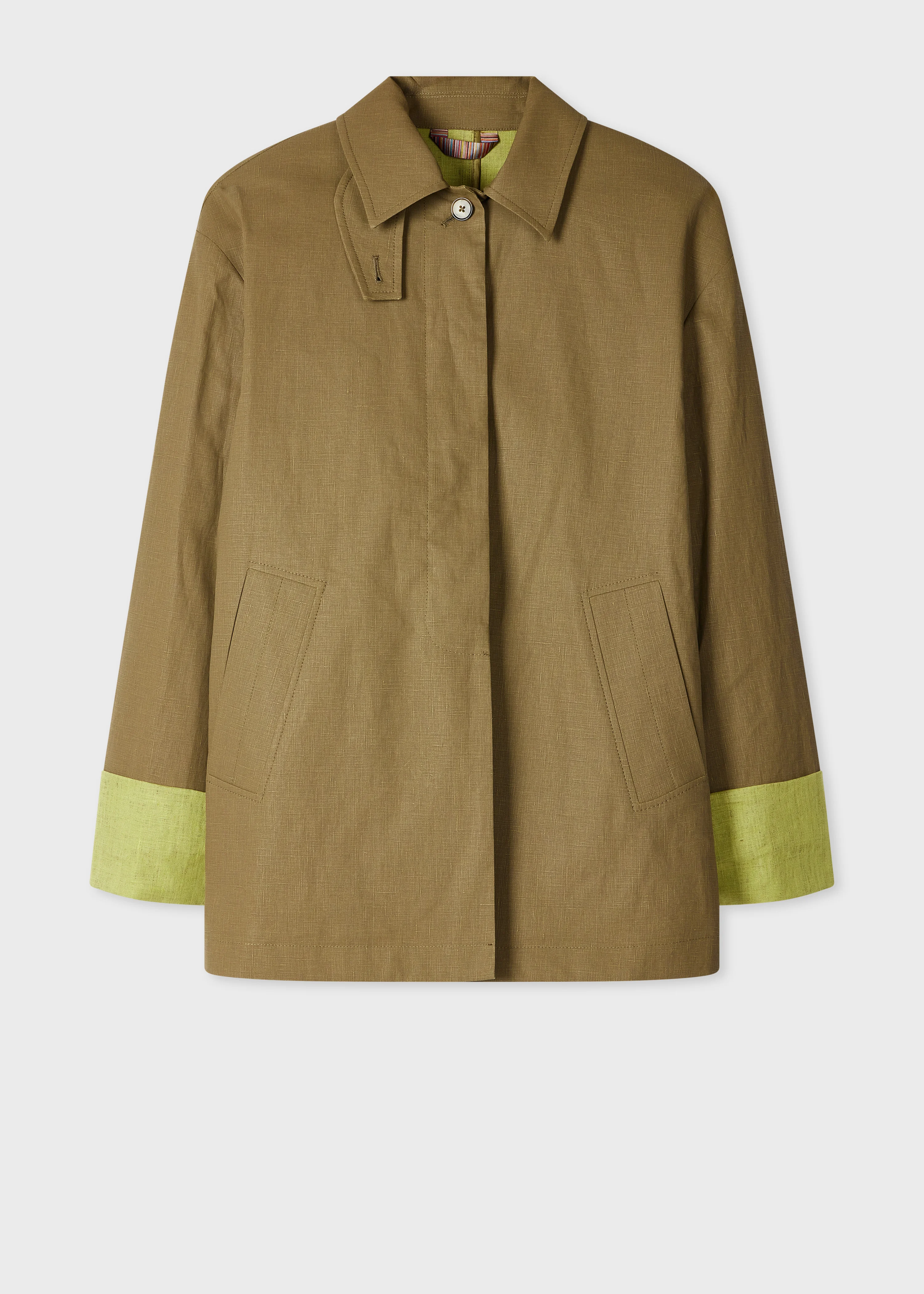 Women's Olive Green Linen Jacket with Contrast Cuffs